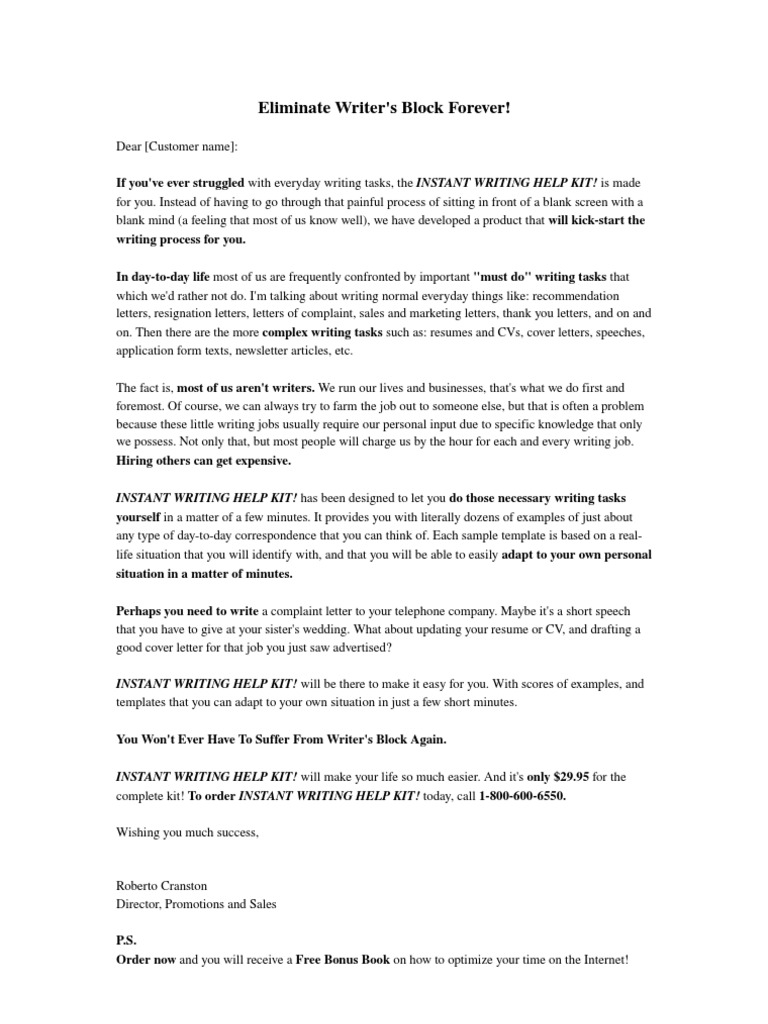 Sales Letter To Promote A Product Or Service Resume